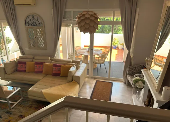 The 2-bedroom Beautiful Townhouse Villa offers proximity to nearby tourist spots, such as Estepona Orchid House, situated a 5-minute ride away. The villa includes parking and a sunny patio with views of the courtyard.